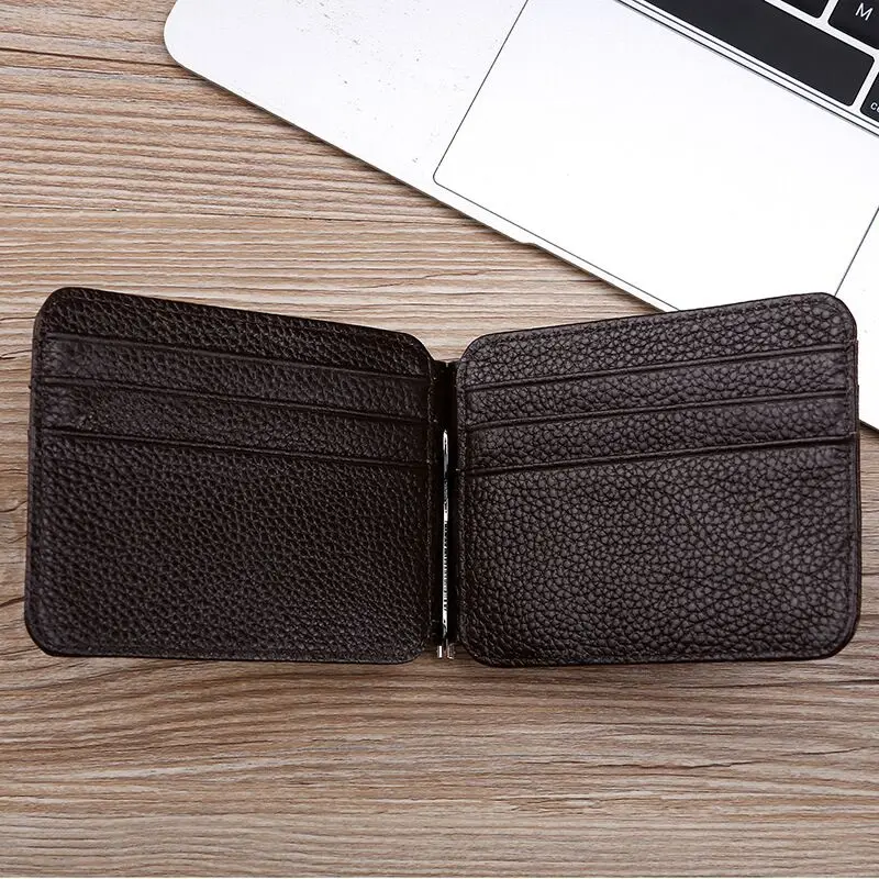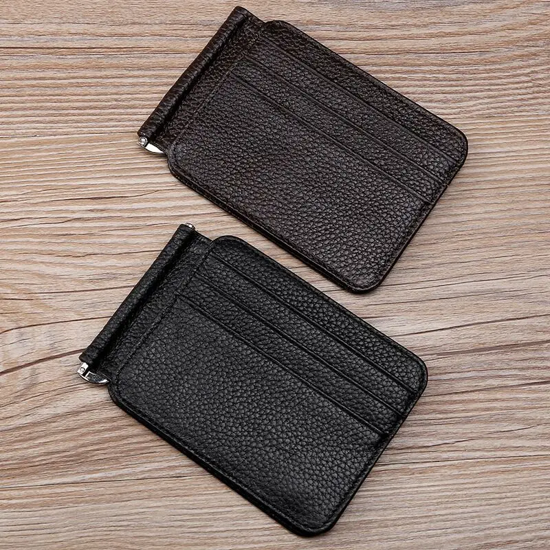 New Product Genuine Cow Leather Bank Card Holder Men Metal Business Multi-Function Dollar Card Holder Ultra-thi