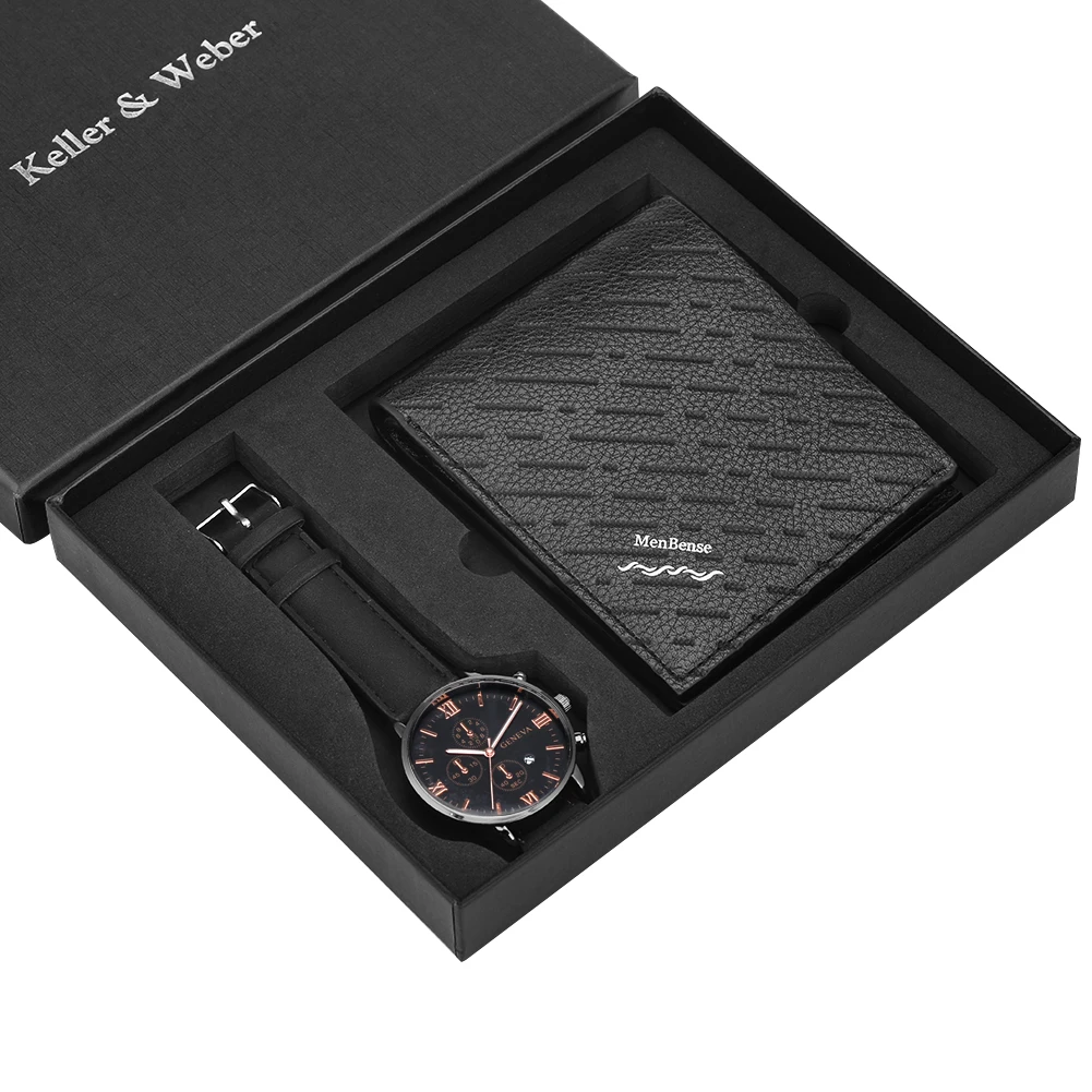 SALE Fashion Business Watch Wallet Set Leather Strap Men Watches Luminous Hands Clock Male Wristwatch Gi