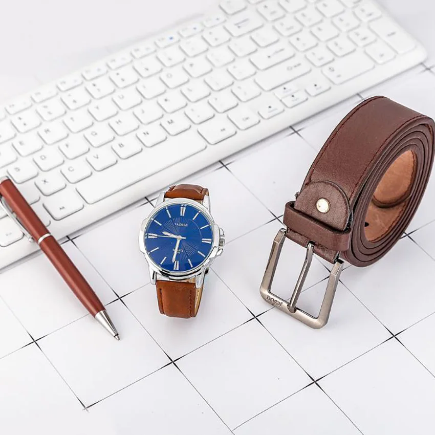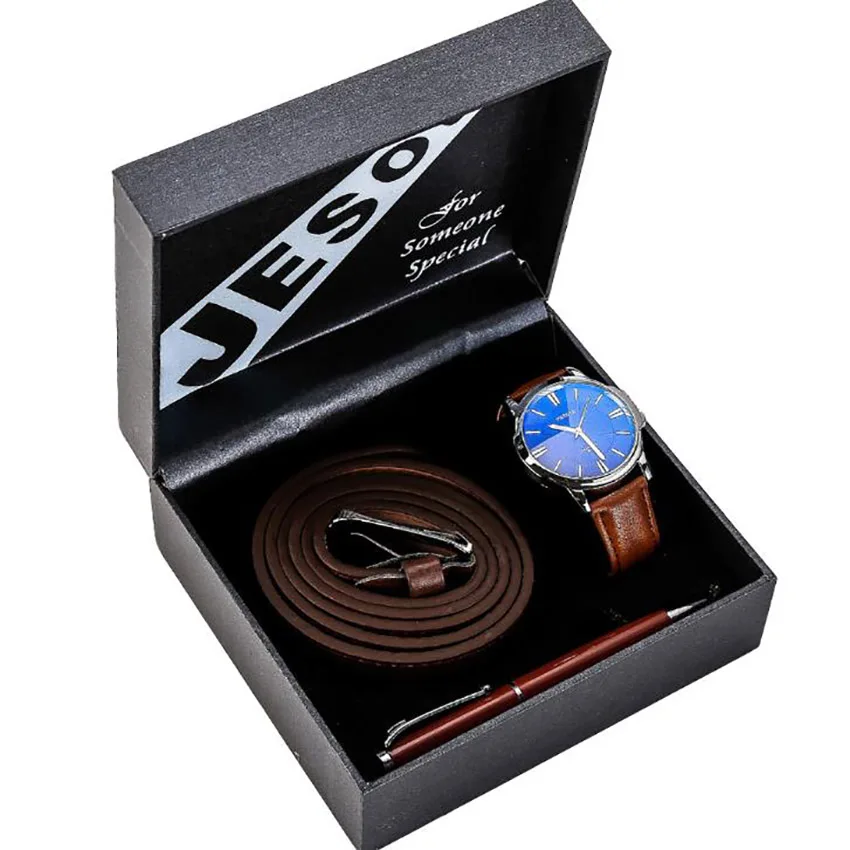 Free shipping 2020 Gift For Boyfriend Men Watch Wallet Pen 3pcs/set gift set belt large dial quartz watch pen Men